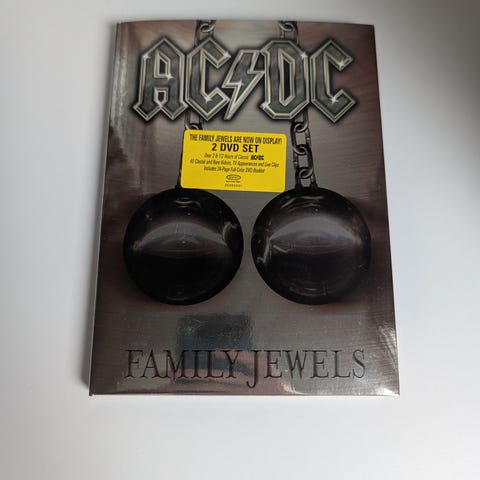 AC/DC Family Jewels DVD 2-Disc Set inneholder en samling musikkvideoer og liveopptredener. Produktet inkluderer to DVD-plater med innhold fra bandets karriere. Formatet er PAL, og settet leveres i original emballasje.