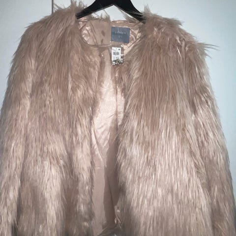 Superkul varm, lett fuskepels jakke i nydelig rosa farge.