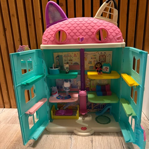 Lite brukt gabby dukkehus med to ekstra «rom», figurer og diverse tilbehør.