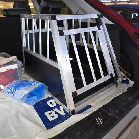 Gulvmatten er festet med borrelås og kan enkelt byttes, den er svært slitesterk og har holdt lenge uten synlig slitasje. Buret har vært i daglig bruk både på kortere og lengre kjøreturer, kan anbefales!