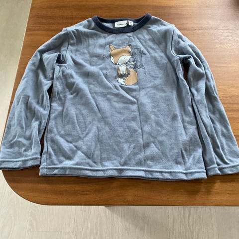 Fin. Litt misfarging / flekkete ved halsen som er naturlig etter bruk. Noen flekker på armen som sikkert vaskes vekk.