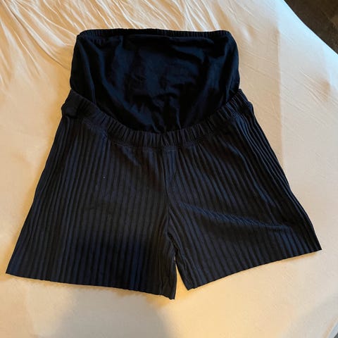 H&M Mama Svart Mammatights Shorts i størrelse M. Shortsen er designet for gravide og har en elastisk midje for komfort. Laget av materiale som gir god stretch og støtte. Fra et røyk og dyrefritt hjem.