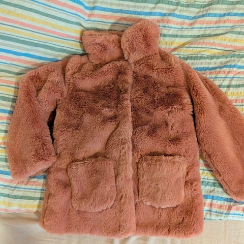 Vakker jakke i «fuskepels» petrol/turkis. Som ny. Trykknapper som lukning. Kan sendes utenom app, 69 kr PostNord. Se mine andre annonser, samsender gjerne