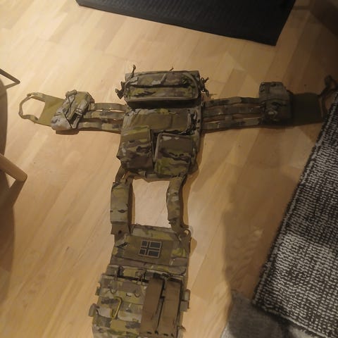 Glidelåsen er lagt 270 grader, og det er MOLLE festeanordning foran. Hele sekken kan brettes ut for bedre oversikt av innhold.