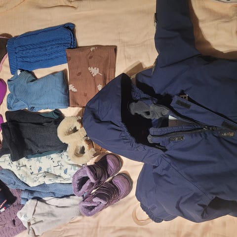 Klespakke på 24 plagg til jente i str.80 med vinterklær som ull og fleece.