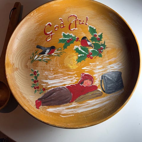 Selger en fin juleskål med hank.