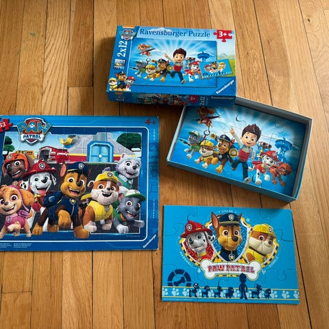 Hakkebakkeskogen + Pelle politibil er i tre. Som nye og selges for 40 kr pr stk