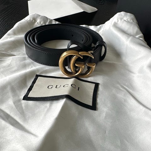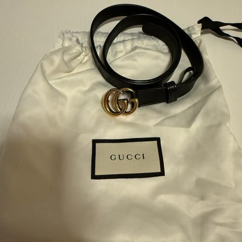 Det følger kun med esken. Chanel belte er ca 94cm i lengde.