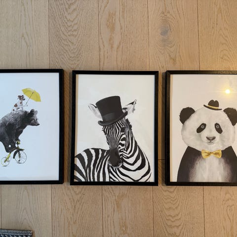 2 stk bilder/plakater med rammer til barnerom. Rammene er fra IKEA og plakatene fra Desenio. Størrelse 30x40 cm.