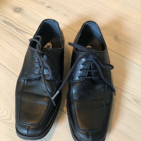 Pensko for gutt i størrelse 39. Svarte, med snøring.