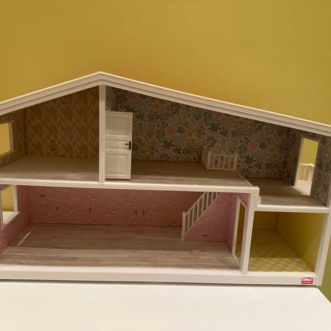 Lundby dukkehus selges. Bare noen få møbler inkludert, deriblant baderomsmøbler.
