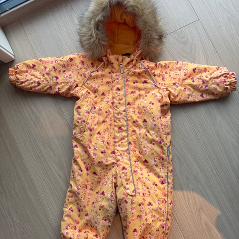 Vinterdressen I merket Reima er str. 86-92, sko merket moon boot er i str. 19-22 og lue i merket kivat er str. 0-2 år.