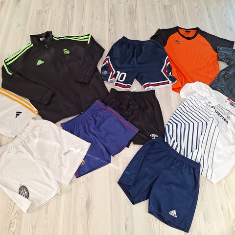 - blå umbroshorts. Denne er str. 152, men er liten i størrelsen og har vært brukt samtidig med de andre her.