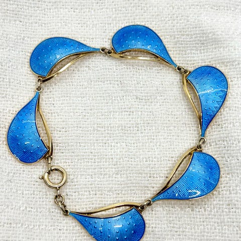 Preget abstrakt mønster i emaljen. Med sikkerhetslenke. Kan sendes