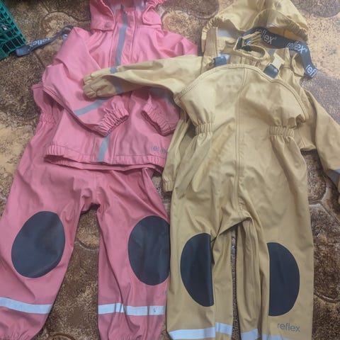 Pent brukt regnsett med regnvotter selges kr 200,-. Merke kids world