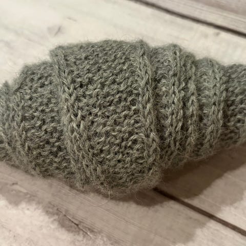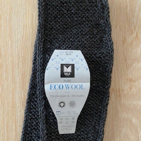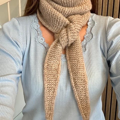 Selger nystrikket miniskjerf i godt Dale Garn.