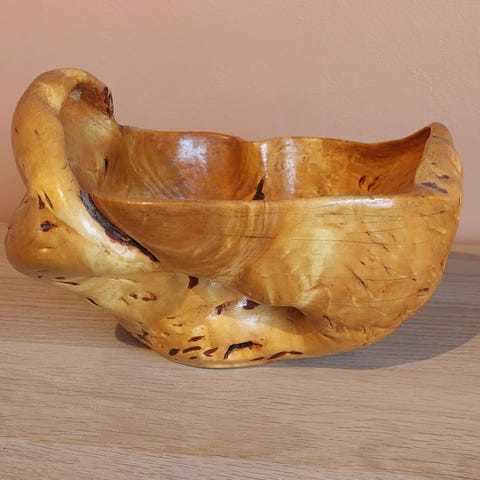 Superb Handmade (One-Cut) Handled Large Wooden Bowl