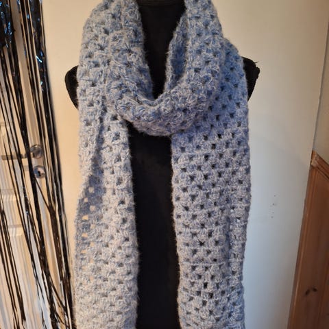 Hekla sengehygge i ullgarn. Har brukt den som selskapsjakke over "den lille sorte". Kan sendes