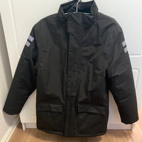 Sort parkas i strl M. Kun brukt på LF i 2025. Har et par bruksmerker, se bilde. Ellers fungerer jakken slik den skal.