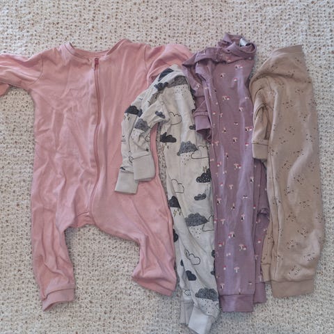 Pent brukt nattøy fra kappahl, newbie og polarn o pyret. 2 stk fra kappahl i str 68. I stk fra kappahl i str 74. 1 stk fra newbie i str 68. 1 stk nattpose fra polarn o pyret i str one size. Nattposen fra polarn o pyret og nattdrakten fra newbie er ubrukt, kun vasket