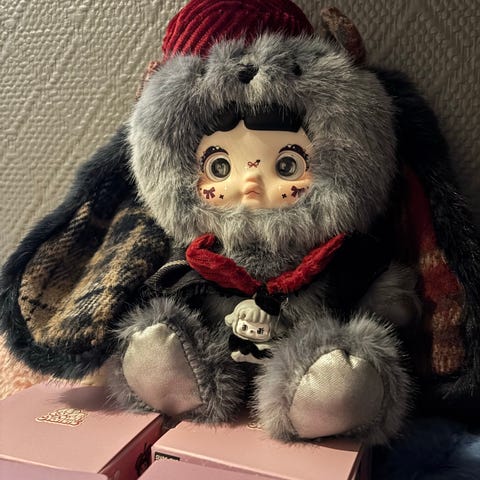 Den nydelige Nommi har kommet med en stor vakker bamseserie med en festlig hatt som bÄde bamsen og barna kan bruke. Myk og god bamse. Har denne vakre pÄ bildet.