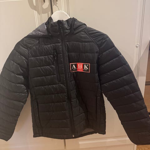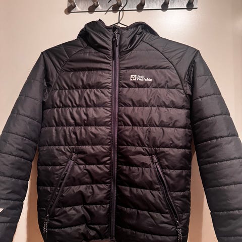 Jakken er i god stand bortsett fra ett lite hull som er lappet. Se bilde.