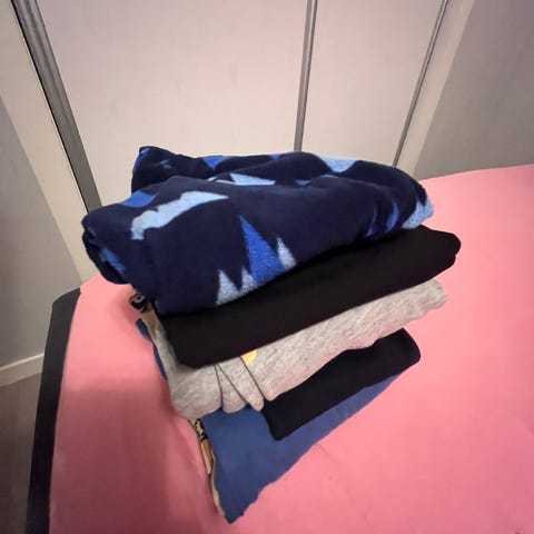Noen plagg viser tegn på bruk med mindre slitasje og merker.