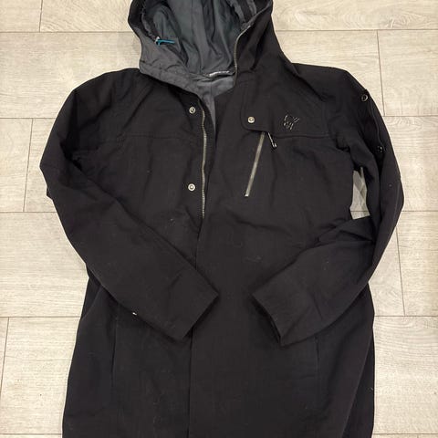 Selger en fin Norrøna vinter/mellomsesongkåpe i svart. Glidelås-hempen har gått av, men tipper kjøper finner en god løsning på det. Selges da den har blitt alt for liten.