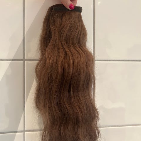 Ponytail løshår i fargen Chocolate Brown. Ekte hår, straight med medium volum. 40 cm. Ubrukt/aldri anvendt. Merke Rapunzel of Sweden.