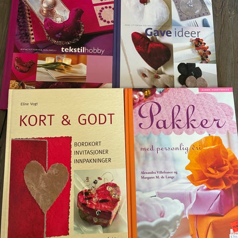 Pent brukte hobbybøker selges. Noen er så godt som nye og omtrent ikke brukt. Selges enkeltvis til kr 50 eller samlet til 200 kr.