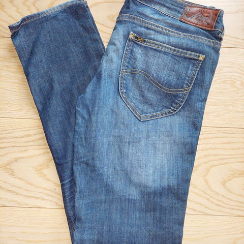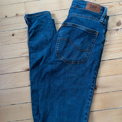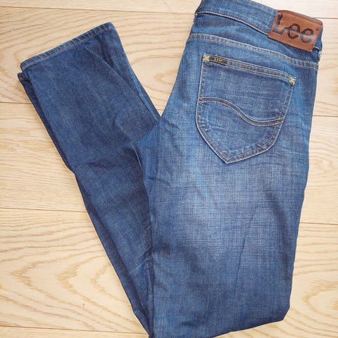 Lee L33 Amy, dame jeans i blå farge, størrelse W27. Laget av denimmateriale, designet for kvinner. Jeansene har standard passform med lommer og knappelukking.