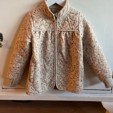 Selger en nydelig Wheat Lola Summer Puffer Jacket i størrelse 110, med det vakre blomsterprintet Summer Flowers. Jakken er lett og pustende, samtidig varm nok til kjølige dager.