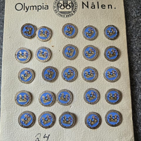 Olympianålen i 14 karat gull fra Vinterolympiaden i Oslo 1952. En veldig sjelden nål og etterspurt samlerobjekt fra OL 1952. I brevet fra Norges Olympiske Komite sier de blant annet; " Da fremstillingen av nålen i gull er sterkt begrenset .................... vil den li laget i et antall av bare noen få hundre ". Det er nålen som selges - ikke brevet og brosjyren.
