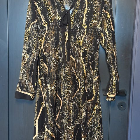 Mango Suits kjole i sort / gyllent mønster str 38/40
