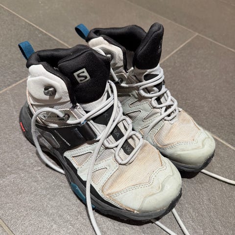 Salomon Fottur Støvel i størrelse 37 for dame. Støvelen har en grå og lilla fargekombinasjon og er designet for fotturer. Materialet og konstruksjonen gir støtte og komfort ved utendørs bruk. Brukte bare 2 ganger.