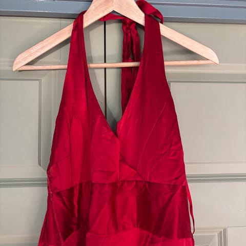Rød kjole i sateng str large. Pent brukt 1-2 ganger.