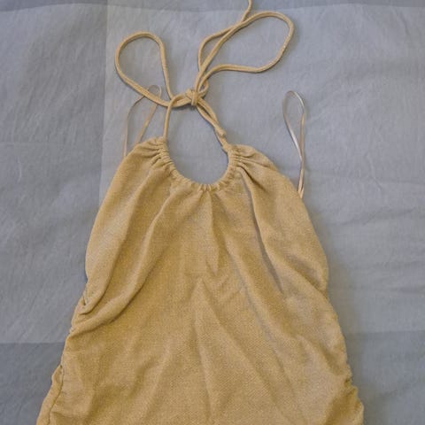 Selger denne nydelige toppen perfekt for fest, jul og nyttår. Den er i gull pg glitter med halterneck som gjør den perfekt til en hvær festlig anledning