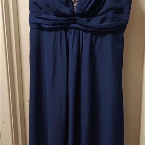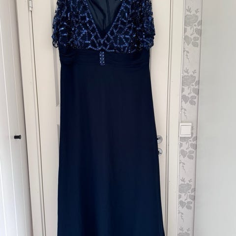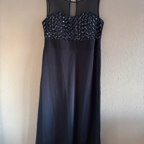 Selger en nydelig, mørkeblå selskapskjole i størrelse 50.
