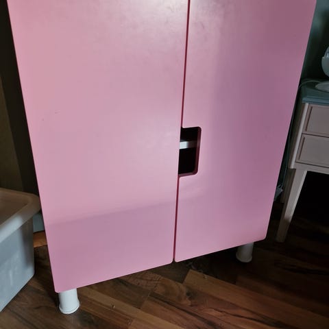 Pent skap med ekstra hyller som ikke følger med originalt, ferdig sammenbygd skap. Selges grunnet overgang til annen oppbevaring. Dørene går fint. Skapet er lett å flytte på, lett å holde rent.
