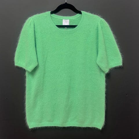 Helt ny Ane Mone jumper i størrelse S, hvit farge. Jumperen har ribbestrikkede detaljer ved hals, ermer og midje, og er laget av angora garn.