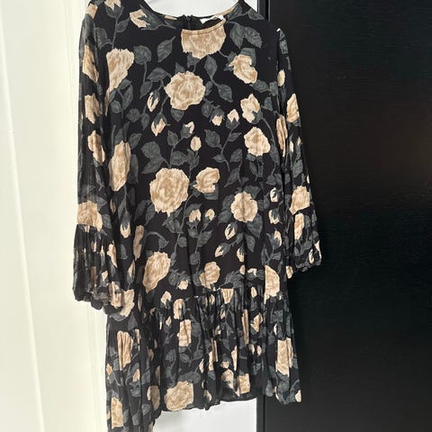 Ganni Hverdagskjole i størrelse 34 med flerfarget rutemønster. Kjolen har høy hals og puffede ermer med mansjetter. Materialet er lett og egnet for hverdagsbruk.