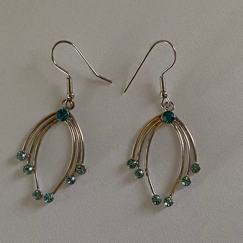 Ørepynt for dame laget av andre materialer med klart steinmateriale i en metallinnfatning. Ørepynten har stiftlås og er designet for daglig bruk.