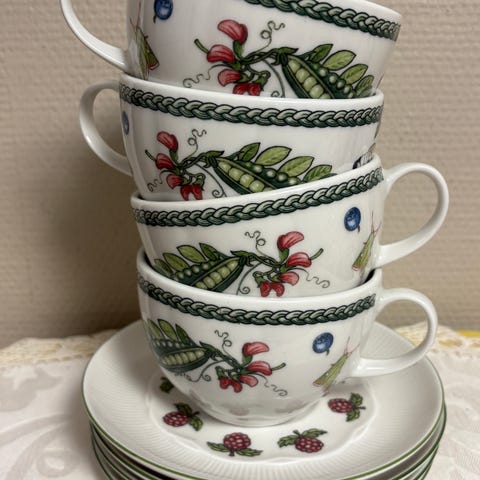 5 kopper og 6 skåler til koppen .