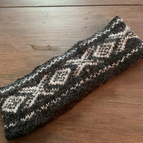 Nydelig sett ned pannebånd og votter I grått. Tovet og med flott mønster med opphøyet "kuler", se bilder. Veldig dekorativt. Veldig varmt sett!