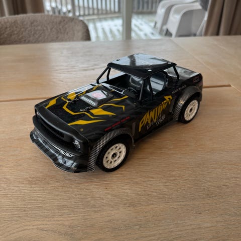 NEDSATT PRIS! Har en rc bil som er i veldig god stand, har bare brukt den noen få ganger, det er en liten sprekk i plastikken, men det er ikke noe betydelig, den er veldig bra å drifte med, den er god for nye å se litt mere proffe til å kjøre, følger med to sett dekk å verktøy til å skifte med, følger med batteri å lader, kjøpte den ny i sommer, grunnet salg er fordi det dessverre ikke er tid til å kjøre med den. Kan sende hvis kjøper betaler:)