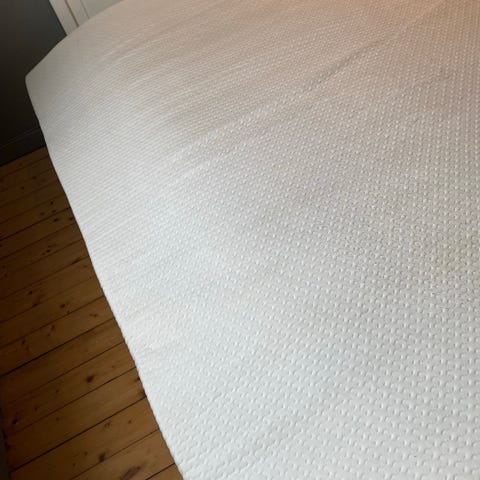Som ny, lite brukt (gjesteseng og brukt madrassbeskytter) Wellpur Gold T 65 fra Jysk. 8 cm tykk med Air memoryskum som former seg etter kroppen selv i kalde rom. Farge grå-silver. Glidelås på trekket som kan vaskes. Ny pris 4500,- Kjøpt ny større seng så nå blir den for liten.