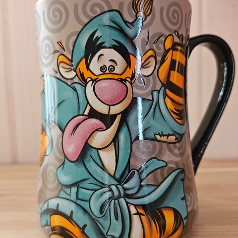 Stort krus med Tigergutt og teksten "wired for another day " .