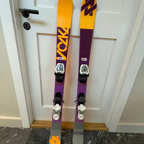 Defekt binding. Meget bra parkski. Volkl er en anerkjent produsent. Mål på Vølkl ski er gjemt under mindingen, men bildene viser ca mål front-midt-bak. God bæreevne til pudderkjøring.