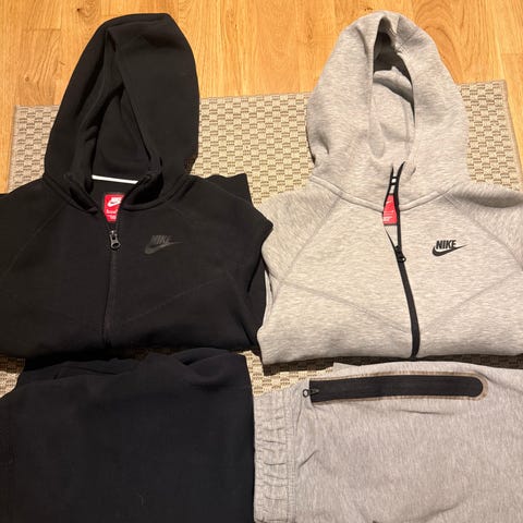 Nike Tech hettejakke. North Face fleecejakke. Nike Air Joggebukse og hettejakke. Burton t skjorte