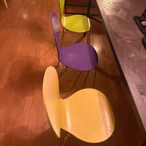 Stolene er finere enn på bildene,ser noe misfarget ut på armlenene,men det er de ikke. Lyset som lyver.
